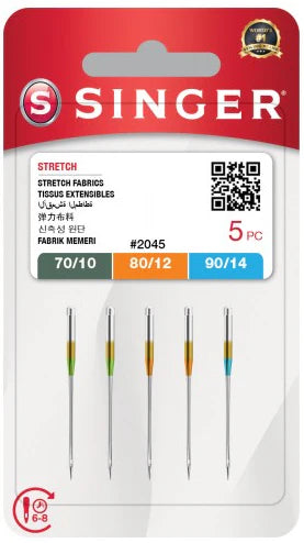 Per tutti i tessuti in maglia ed elastici, inclusi nylon, jersey, poliestere e tessuti felpati.