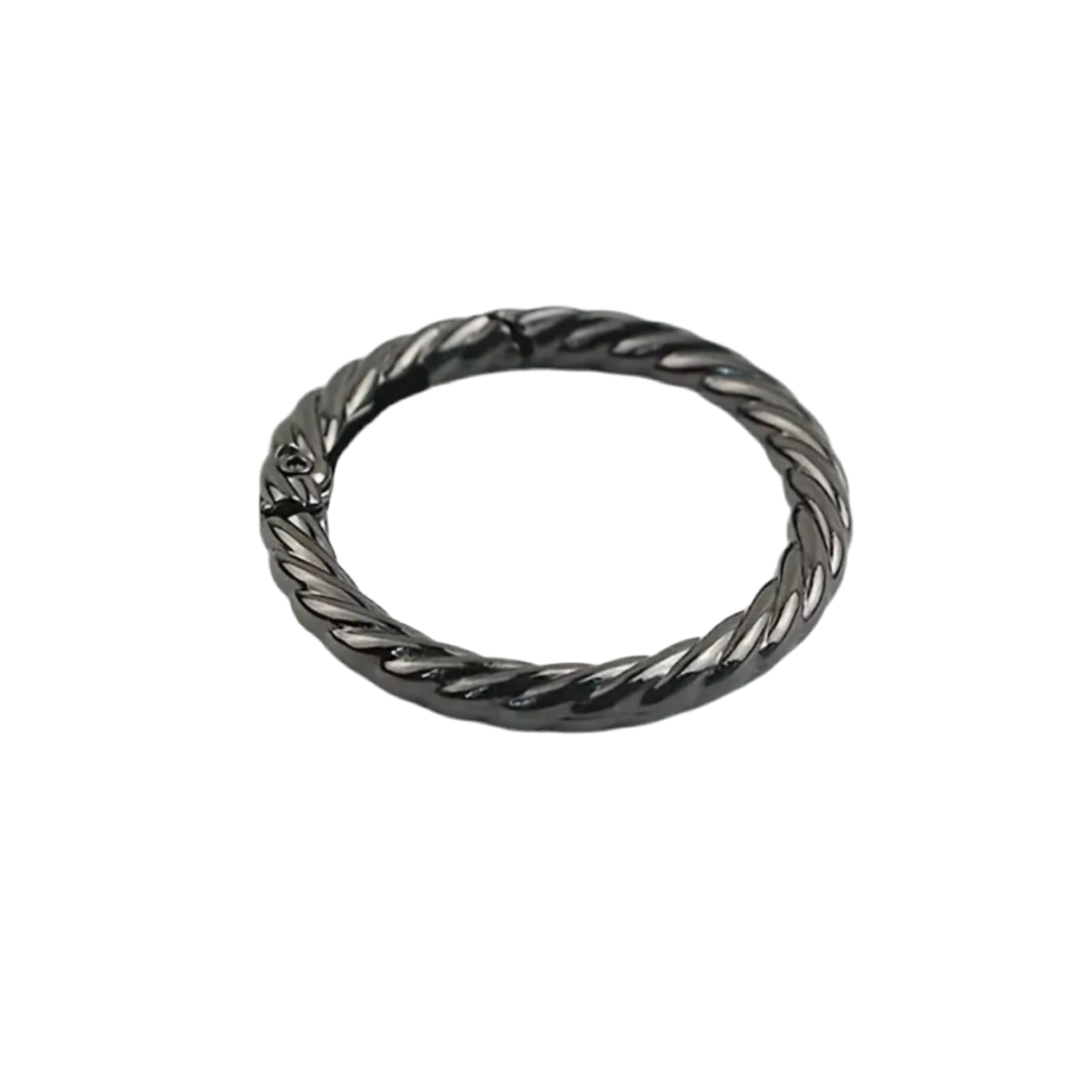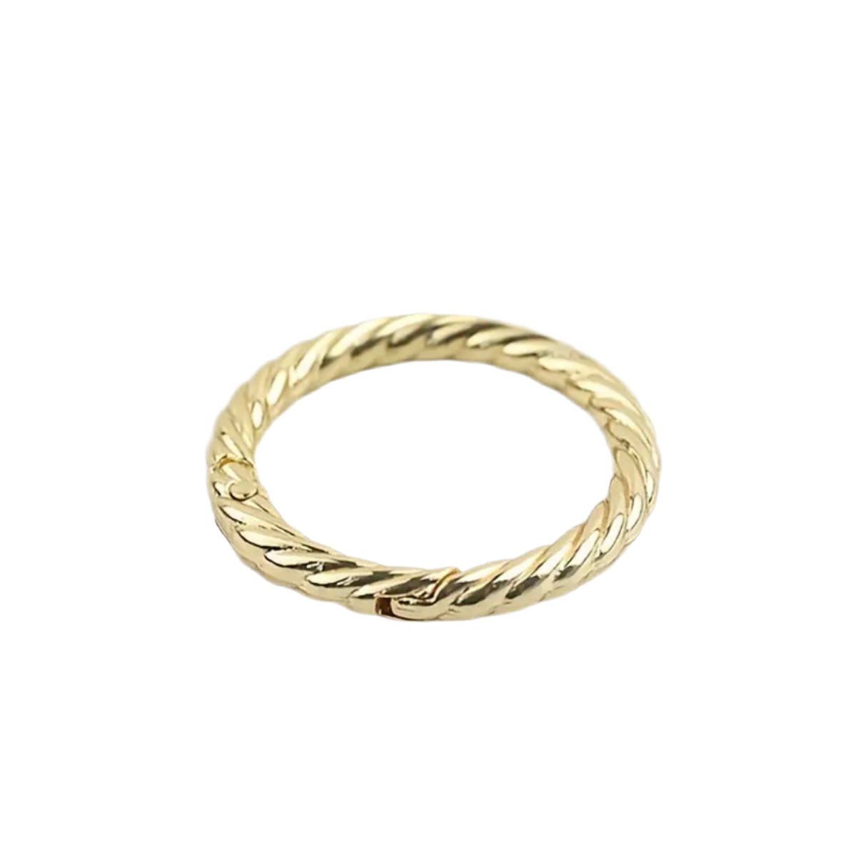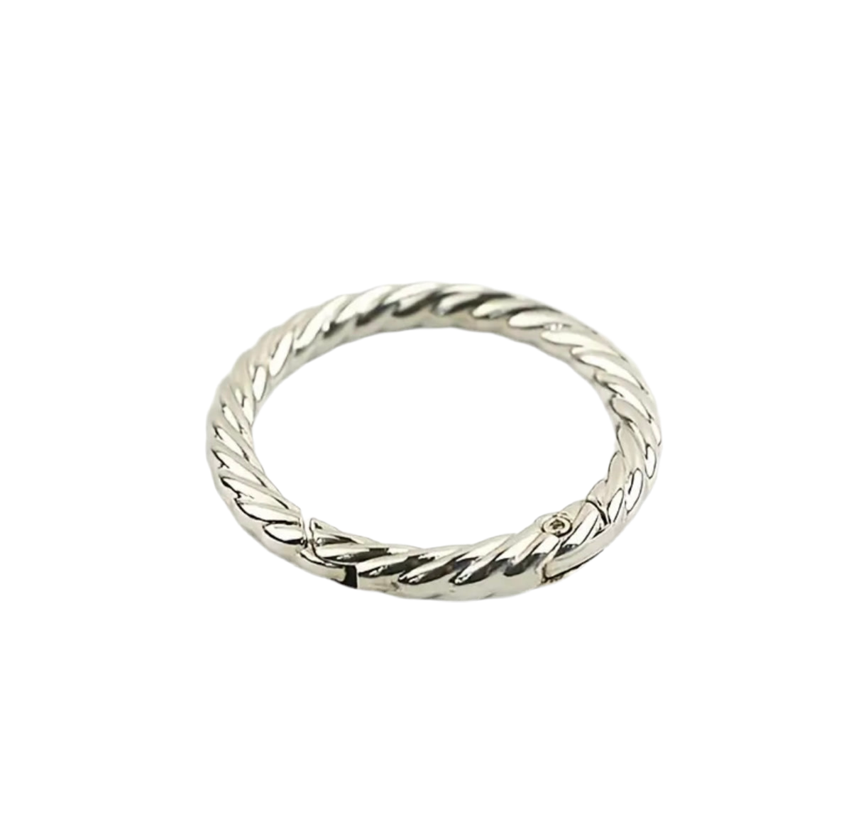 Gli anelli a moschettone con effetto intrecciato, sono degli anelli in metallo apribili perfetti per aggiungere un tocco di funzionalità e di stile alla realizzazione di borse fatte a mano, portachiavi, bijoux e tanti altri accessori !