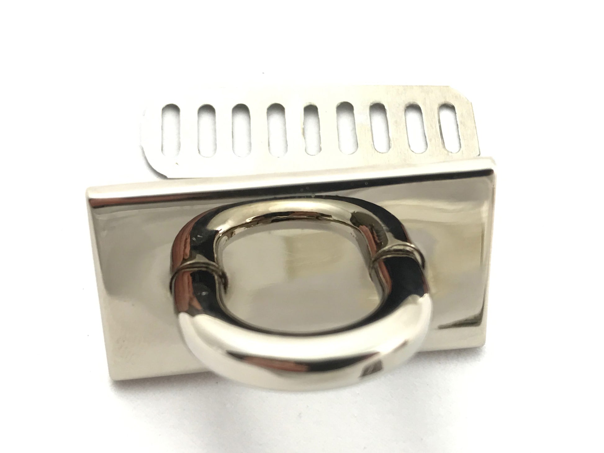 Attacco Ponticello grande per borse all”uncinetto con fissaggio rapido con linguetta richiudibile, ideale per creare un solido aggancio per catene o tracolle o altri accessori. Misure: base 4x2 cm altezza 2 cm.