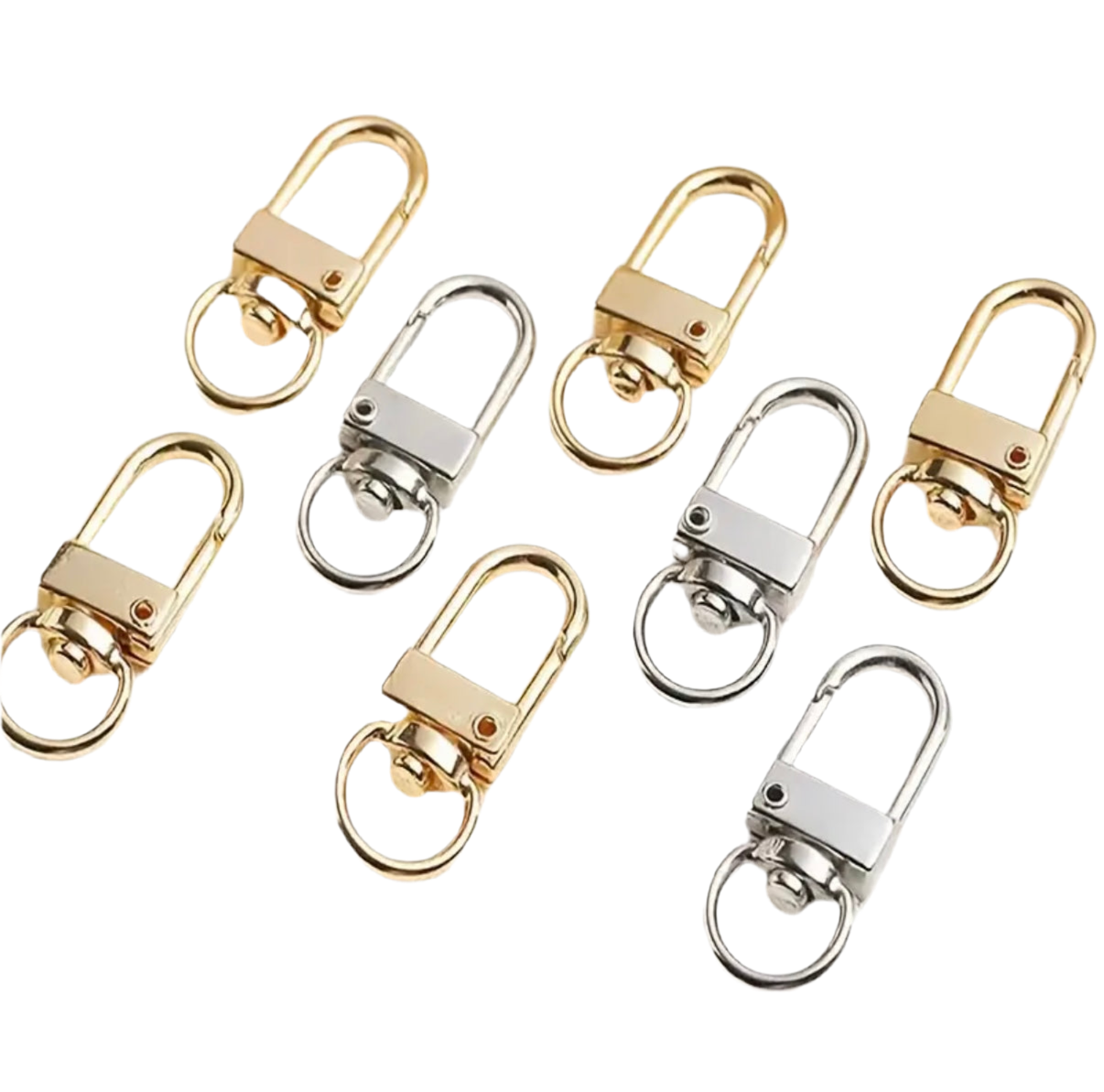 Questo moschettone in metallo è un accessorio essenziale per tutte le vostre creazioni di accessori. Dotato di un affidabile meccanismo a molla e di un anello rotante, può essere agganciato in modo rapido e sicuro e ruotato di 360°. Compatto e maneggevole, è perfetto per i progetti che richiedono un sistema di apertura e chiusura rapida e funzionale.